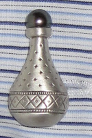 You’ll have to wait for the professional pictures to see the 18K gold genie who lives inside the silver bottle. While you’re waiting, you can check out this tribute site for the I Dream of Jeannie television show. As a child, I always liked Jeannie’s bottle abode and hairdo, but I was disturbed that she called her astronaut discoverer/boyfriend “Master.” Now I realize that Jeannie and Major Nelson* were in a completely consensual BDSM relationship, which is A-OK with me. Different strokes for different folks, and all that. This clip of Jeannie playing stewardess seems to prove it. Note the chains and tight seatbelt action.