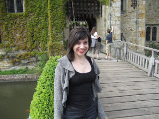 Here I am wearing the Boleyn necklace outside Anne Boleyn‘s childhood home, Hever Castle. (Click photo to see the necklace clearly.) I wore the same necklace to a garden party in honor of Queen Elizabeth II at the British Embassy this spring. One of the young women working for the Embassy saw the necklace and said, “That’s PERFECT for today.” I thought the queen was adorable. In a majestic way, of course. I may have to do a piece of jewelry in her honor.