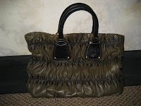 Today I had lunch with my friend Candice Sabatini. She and I have identical black patent Prada Gaufre bags. Here is a rather dark picture of the bags meeting at lunch. We left them together while we ate in the hopes that they would mate and produce a litter of wallets. I am obsessed with the Gaufre bags. I think it’s because they remind me of shar-peis. In addition to the black patent bag, I have an olive green nappa tote that I bought at a consignment store. You can check out Candice’s beauty products reviews on Beauty News NYC. And you can admire two more beautiful Gaufre bags here and here.