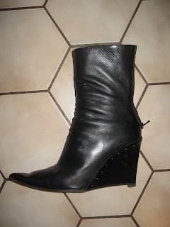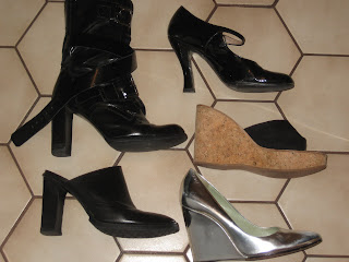 Here are the very important shoes. I took the picture on the kitchen floor and when Gigi the dog saw them she started growling. Good to know she can protect me from an invasion of a shoe army.