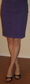 Here are my (previously posted) legs in my tacky purple American Apparel skirt.