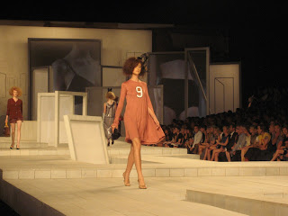 I’ve never been one of Marc’s slavering devotees though I adore his work for Louis Vuitton (I so wish I could afford those clothes) and I acknowledge that his own line is very influential even when unwearable. I do love going to the show to see what people are going to be influenced by next season. I also go to enjoy circus-like scene (just like Barnum & Bailey but without unpleasant elephant smells!) and to see what will be piled up on the clearance racks at Bergdorf Goodman in a few months.