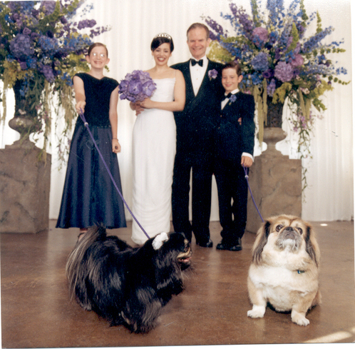 At some point, I sent him a rejection letter — handwritten on paper — that said I “respected him as a journalist,” but MrB, being an ultra-optimistic guy, didn’t notice the rejection part. I decided to treat him to dinner to clarify his status while “paying him back” for ballet-ticket expenses and whatnot. You know how it is with a lot of men who aren’t MrB (#NotAllMen, duh, but a helluva lot of men): Once they’ve spent money on you, they think you “owe” them. I always liked to be sure I didn’t have an outstanding tab. The only problem with my scheme was that when MrB came to pick me up, he cleverly befriended my beloved rescue dog Mr. Chubbs. Mr. Chubbs’s happiness was very important to me, so, eventually, I had to marry his new friend. It did take a while: MrB and I didn’t move in together until 2000, and we didn’t get married until 2001. Of course, when we did finally get hitched, Mr. Chubbs was there.