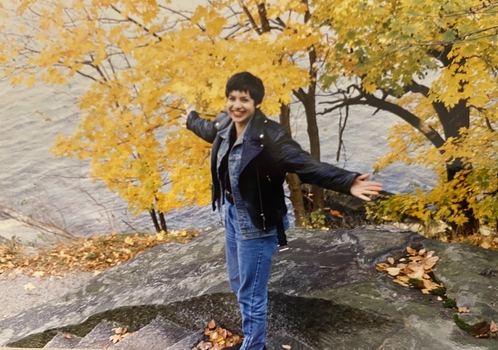 I’m so glad I never purged this jacket from my closet like you’re “supposed to” with clothes you never wear. This jacket was gathering dust for over a decade because I didn’t like its oversized, 1980s style, and I had gotten a smaller motorcycle jacket that I preferred. There were several times when I put the old jacket in a pile of clothes I was taking to Housing Works thrift shop, only to take it out at the last minute, remembering how much I eventually regretted giving away other 1980s/1990s fashion. As for the exact vintage of this motorcycle jacket — I suddenly have doubts. I’ve always been sure that my mother got it for me at Bloomingdale’s in the mid-1980s, but I just now realized that I’ve never looked for any photographic evidence of that, while I do have photos of me wearing it in 1992.