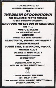 What do you mean, you don’t remember? I know where I was! Yeah, it was probably me that killed downtown because I wasn’t 21! UPDATED TO ADD: There’s a real killer listed on that invitation!