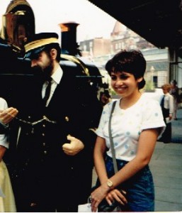 I keep flipping through photos from my first trip to England in 1983, hoping to find the picture of my encounter with Roger Daltrey. I kept passing over one in which I was standing by a life-size model of a old-time train conductor; the white t-shirt I was wearing in the shot didn’t interest me….