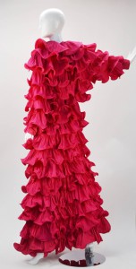I was browsing 1980s vintage while watching the Golden Globes red carpet, and I had to point out this ruffled Pierre Cardin design to my designing friend Stacy Lomman. Stacy is the one who looked through my closet once and said, “Wow! Even your ruffles have ruffles!” I said, “Do you think this has enough…