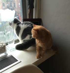 I was looking for Purrkoy the kitten recently. FitzRoy, his older cat brother, was like, “Kitten? What kitten? We have a kitten?” I think Fitz is tired of PK’s big butt blocking his view of the pigeons.
