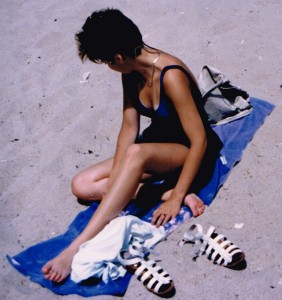 In 2008, I got a pair of white wedge gladiator sandals by Jil Sander, inspired by my fond memories of the flat white gladiators I wore in 1985. I searched for photos of the original sandals but didn’t find any … until now! Here are the sandals sitting next to me on the beach. I…