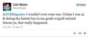Actress Lea Michele (Glee) was recently spotted wearing a gold nameplate necklace reading “Cory,” in honor of her boyfriend/co-star Cory Monteith. The concept doesn’t appeal to gorgeous JCK Magazine writer Stephanie Schaefer, who blogged, “To me, this trend seems to be the equivalent of doodling hearts around your boyfriend’s name in middle school—cute, but also…