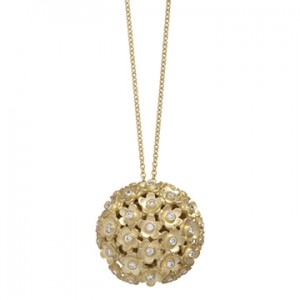 I designed my 18K gold and diamond Mia scent locket in 2006. A scent locket isn’t a new concept. (It’s designed so the wearer can put solid perfume in the locket; the openings in the locket allow the fragrance to waft out.) It’s easy to find vintage scent lockets as well as modern-day costume-jewelry versions….