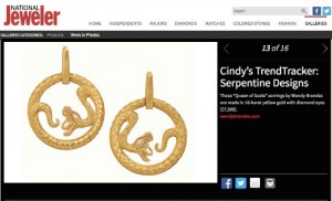 Thanks to Cindy Edelstein of National Jeweler for including my snake earrings in her TrendTracker piece on serpentine designs. This earring style — and its matching necklace — was inspired by and named after Mary Queen of Scots. For the mini history lesson that explains that, click here. I’ve had this design for quite a…