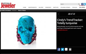 Cindy Edelstein of National Jeweler reports in her weekly TrendTracker post that turquoise is “having a real moment in the sun.” That’s an appropriate description, seeing as the cheerfully colored stone is perfect for summer. Of course, just because we use a bright color in our jewelry doesn’t mean we can’t be our morbid, skull-loving…