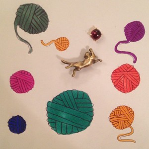 Cats rule teh Interwebs, so why shouldn’t they rule the jewelry world too? Thanks to Hannah Becker of Diamond Doodles, you’re getting a sneak peek of my newest collection, inspired by FitzRoy the cat! Hannah turned my 18K-gold FitzRoy-shaped earring jacket into a picture of a kitteh romping with balls of yarn. One of the…