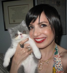 When I come home from parties, having indulged in a little Champagne, I like to make the pets pose for selfies with me. Purrkoy the kitten is a frequent victim of my tipsy affection because he’s easier to grab than speedy cat FitzRoy and smells better than Gigi the dog. This photo is from July…