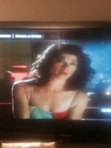In 2010, I caught a Law & Order rerun in which an actress was wearing the short version of a long Yigal Azrouël dress I own. This week, the episode came around again! Unfortunately, I missed the one chance to get a full-length photo of the dress, but you can see the top of it…